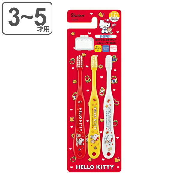 歯ブラシ 子供 園児用 3本セット キャップ付 ハローキティクッキー 3〜5才 ( 子供用歯ブラシ 幼稚園 保育園 やわらかめ 14cm ハブラシ コンパクト ヘッド やわらか毛 生えはじめ 仕上げみがき 磨き 持ちやすい グリップ )【3980円以上送料無料】