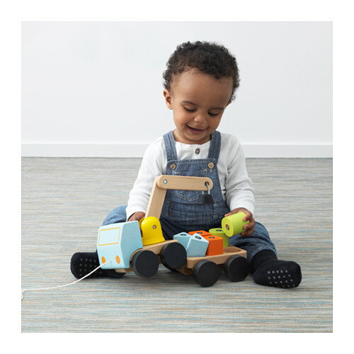こうした遊びは、指先の器用さや、論理的な思考、手と目の協調を養います - 木製パーツを使用した頑丈なつくりなので、お子さまが手荒に扱っても、荷物をたくさん積んでも大丈夫 - 磁石で簡単にブロックを持ち上げたり荷台に積んで遊べます - トレーラー後部を切り離せるようになっています - トラックの前に付いたひもで、トラックを引いて遊べます デザイナー Francis Cayouette パッケージの大きさと重さ 商品番号: 802.948.81 パッケージ数:1 幅: 17 cm 高さ: 11 cm 長さ: 34 cm 重さ: 1.61 kg お役立ち情報 対象年齢:12カ月以上 お取り扱い上の注意 石けん水を含ませた布で拭いてください きれいな布でから拭きしてください 素材 木製パーツ: ビーチ無垢材, ビーチ無垢材, ステイン, 透明アクリルラッカー マグネット: ネオジム