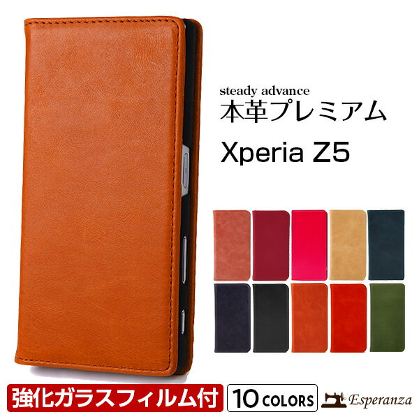 Xperia Z5 ケース 本革 手帳型 ガラスフィルム付 エクスペリア Z5 SO-01H SOV32 501SO カバー マグネット式 スマホケース スタンド 機能付 シンプル おしゃれ レザー 男女兼用 ギフト プレゼント おすすめ